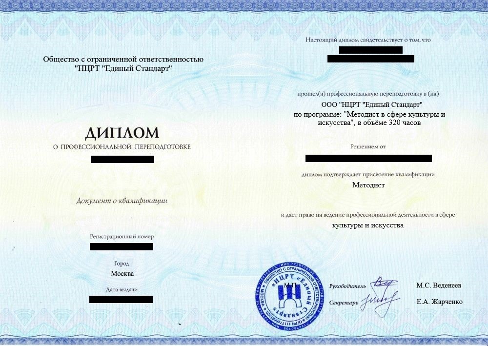 - Диплом о профессиональной переподготовке установленного образца. Срок действия: бессрочно